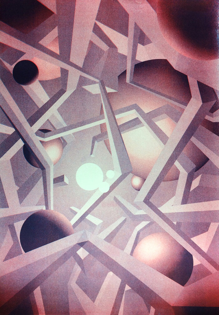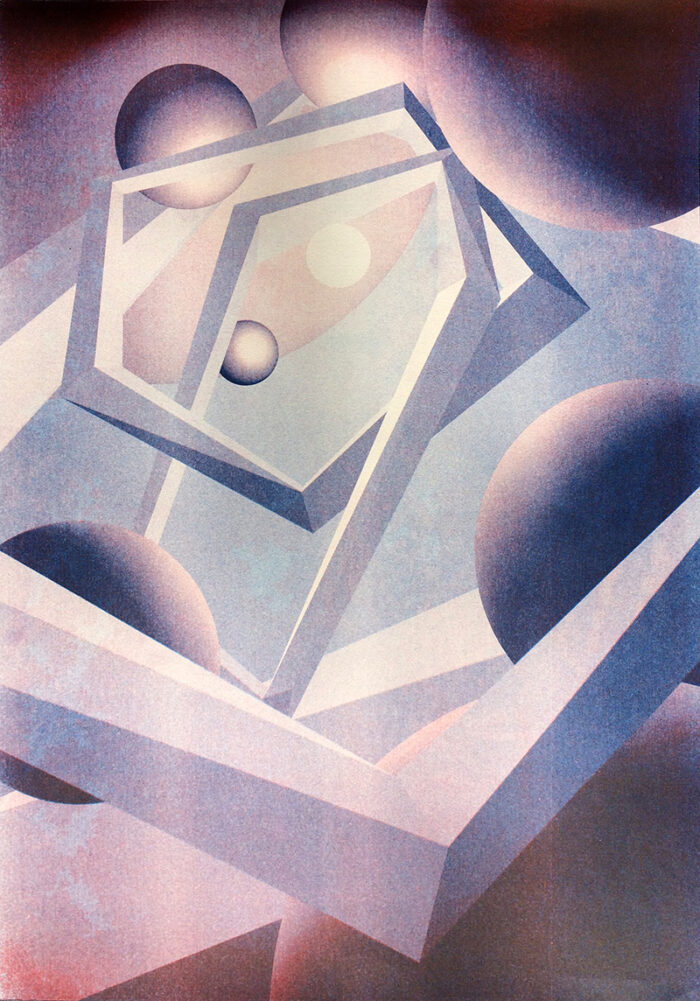 Light, color interaction, and reduction become central elements, translating digital structures into a tactile printed form.