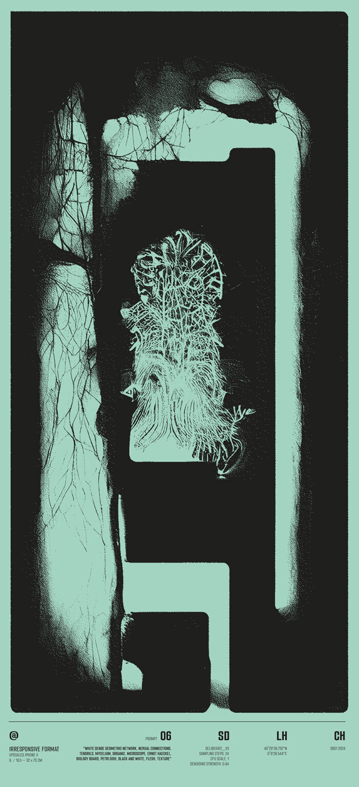 Irresponsive Formats is a series of silkscreen posters generated through successive AI transformations.