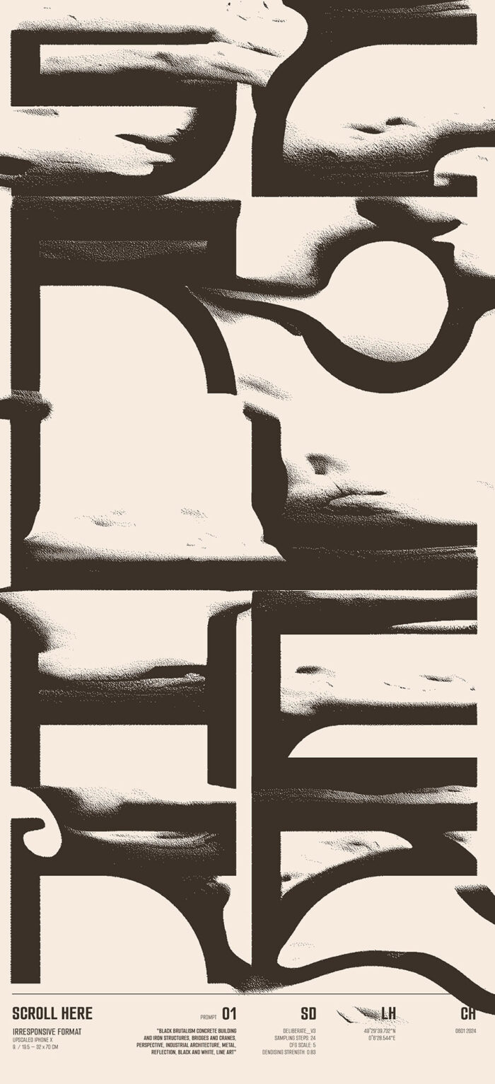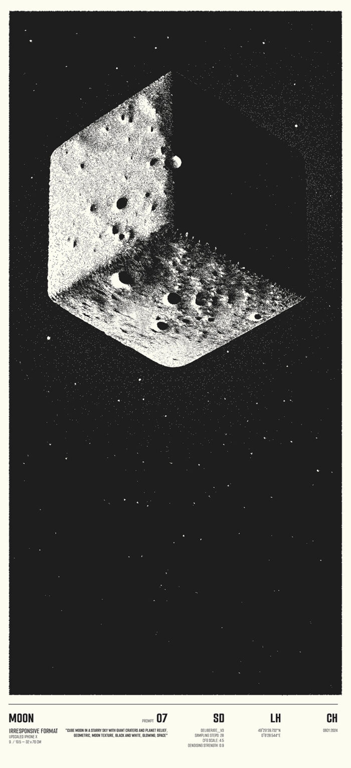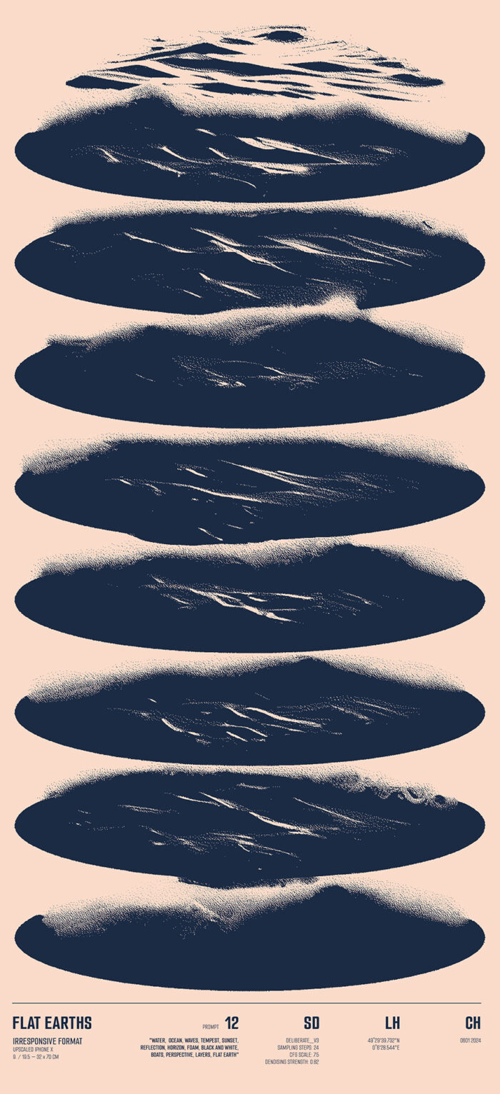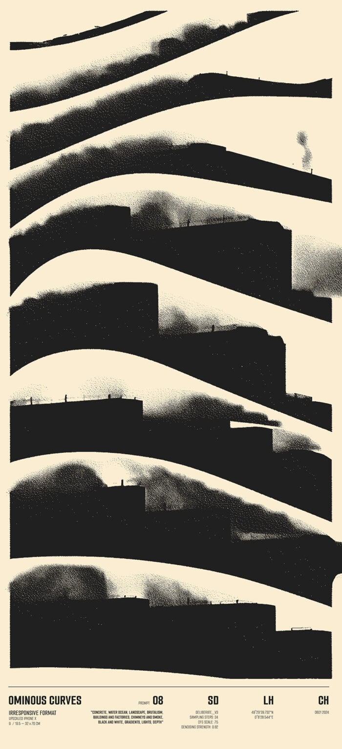 Simple, radical typographic or formal compositions are confronted with multiple generative models, allowing the process to produce unexpected, printable halftones and textures.