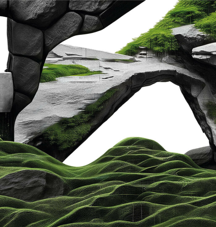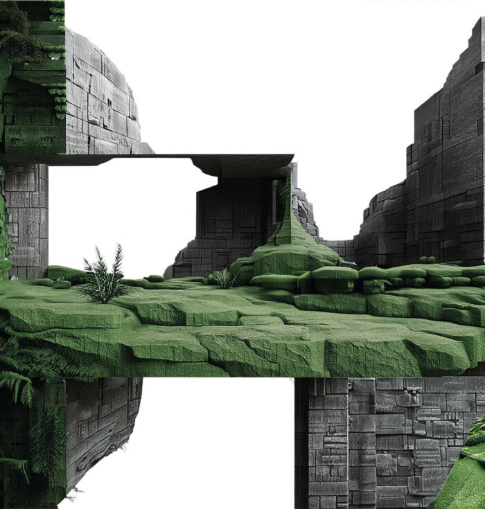 Journeys vol.2 continues the exploration of infinite, generative landscapes, shifting away from representation toward abstraction. Built from identical generative processes, these environments blend texture, immersion, and spatial suggestion into more conceptual, graphic forms.