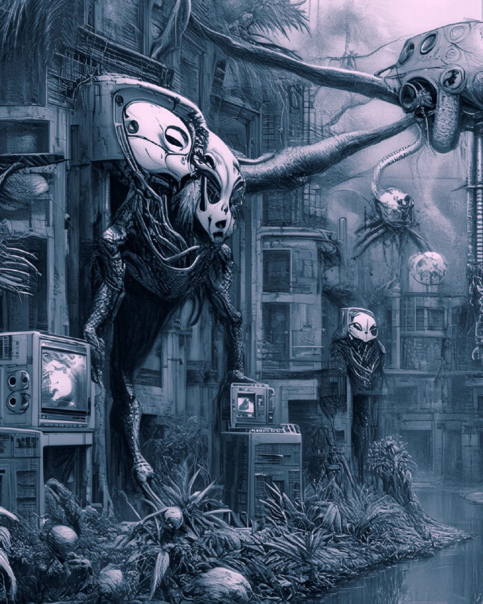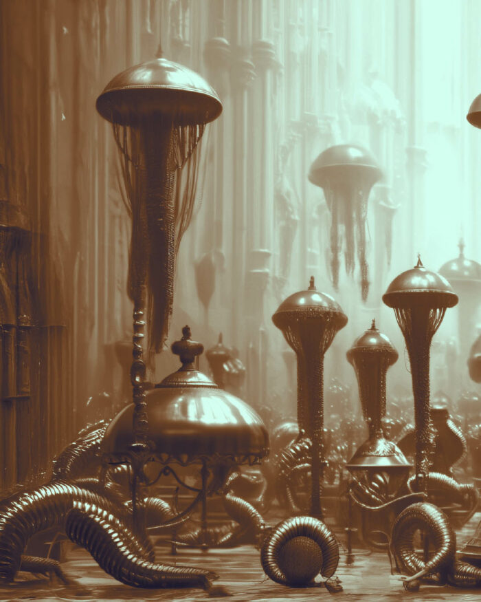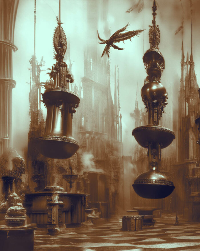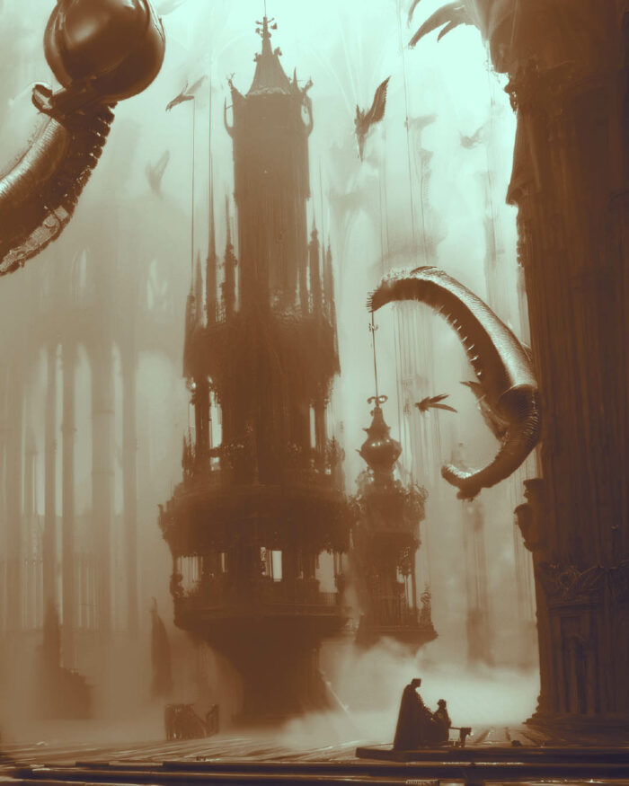 Blending fantastical environments with abstract concepts, each panorama unfolds as a visual and poetic passage where fragmented worlds are assembled into continuous narratives.