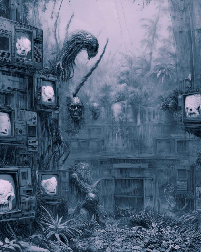 Journeys is a series of immersive, infinite landscapes meticulously recomposed by hand from more than a hundred images generated by artificial intelligence models.