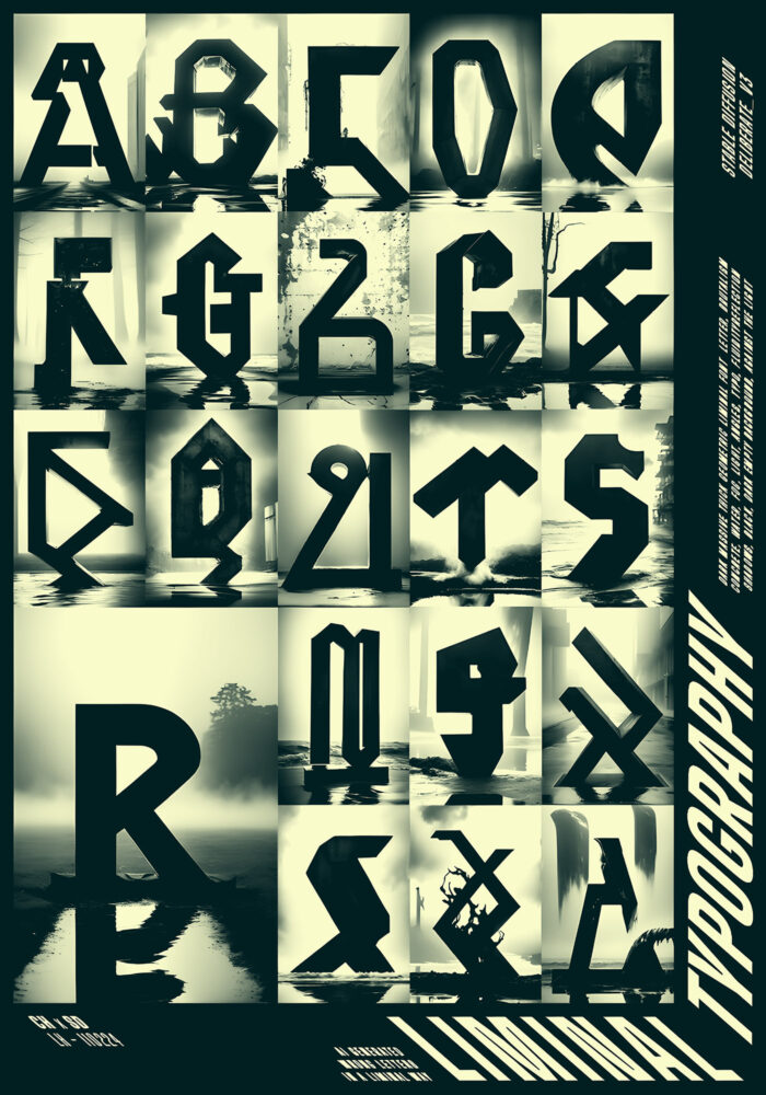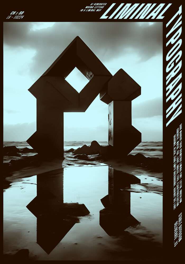 Liminal Typography is a series of three posters generated through photorealistic AI applied to abstract, monolithic typographic structures.