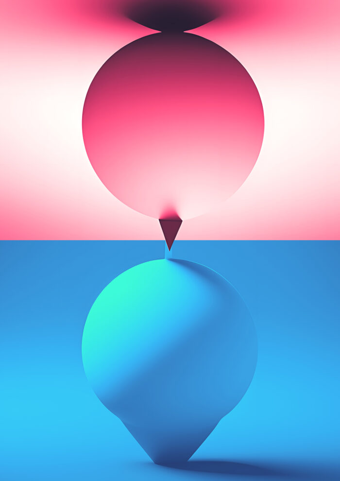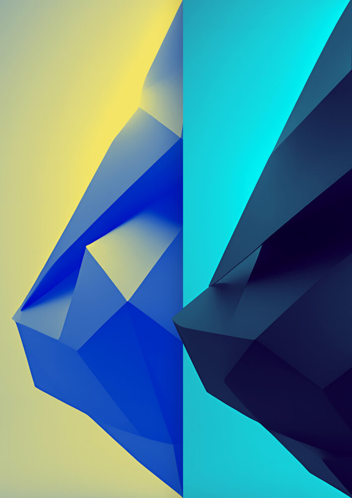 this project explores geometric volumes and depth through the reinterpretation of AI-generated imagery. The generated images serve as raw material, extracted and recomposed, while color is deliberately added by hand to assert compositional intent.